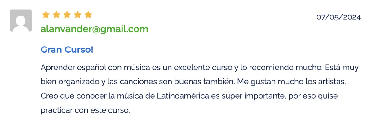 Además de un banco de canciones ideales para que alcances la fluidez en español, el curso Aprender Español con Música tiene la estructura y la estrategia que necesitas para alcanzar la fluidez.